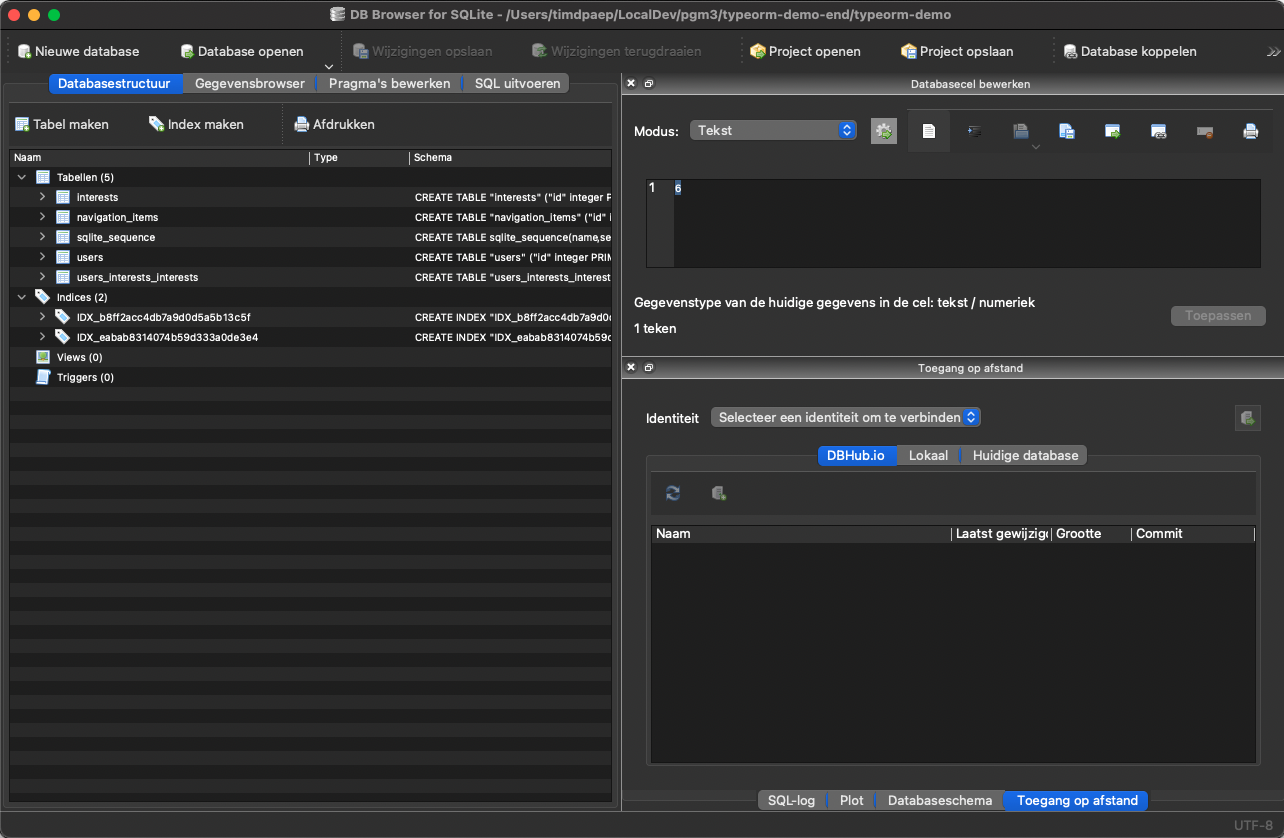 DATABASE_NAME="typeorm-demo.sqlite3"Databeheer met TypeORM