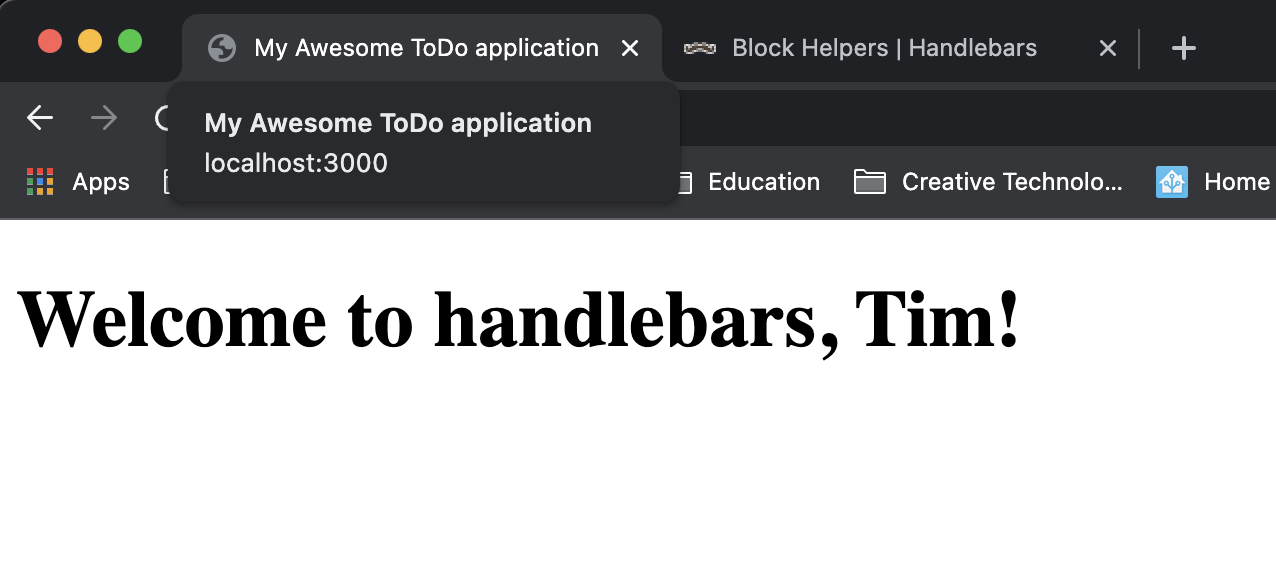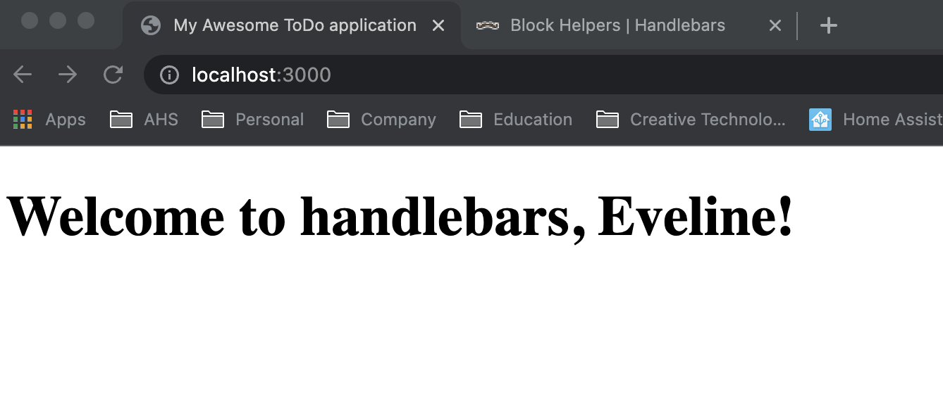 Welcome to handlebars, {{#bold}}{{firstname}}!{{/bold}}