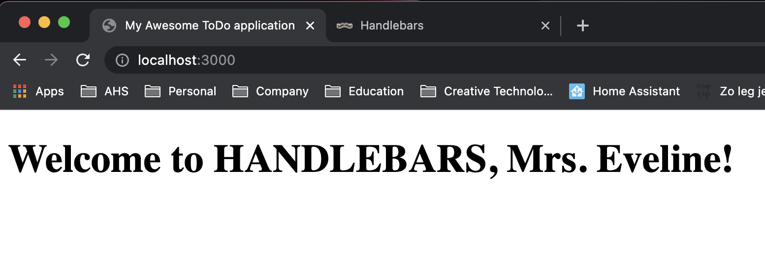 Welcome to handlebars, {{#bold "Mrs."}}{{firstname}}!{{/bold}}