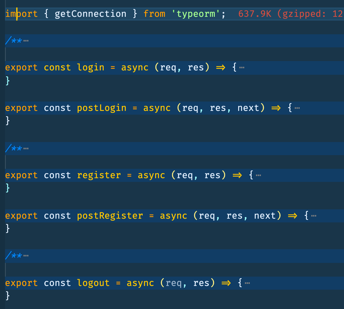 app.post('/login', ...validationAuthentication, postLogin);export const postRegister = async (req, res, next) => {