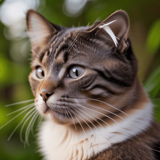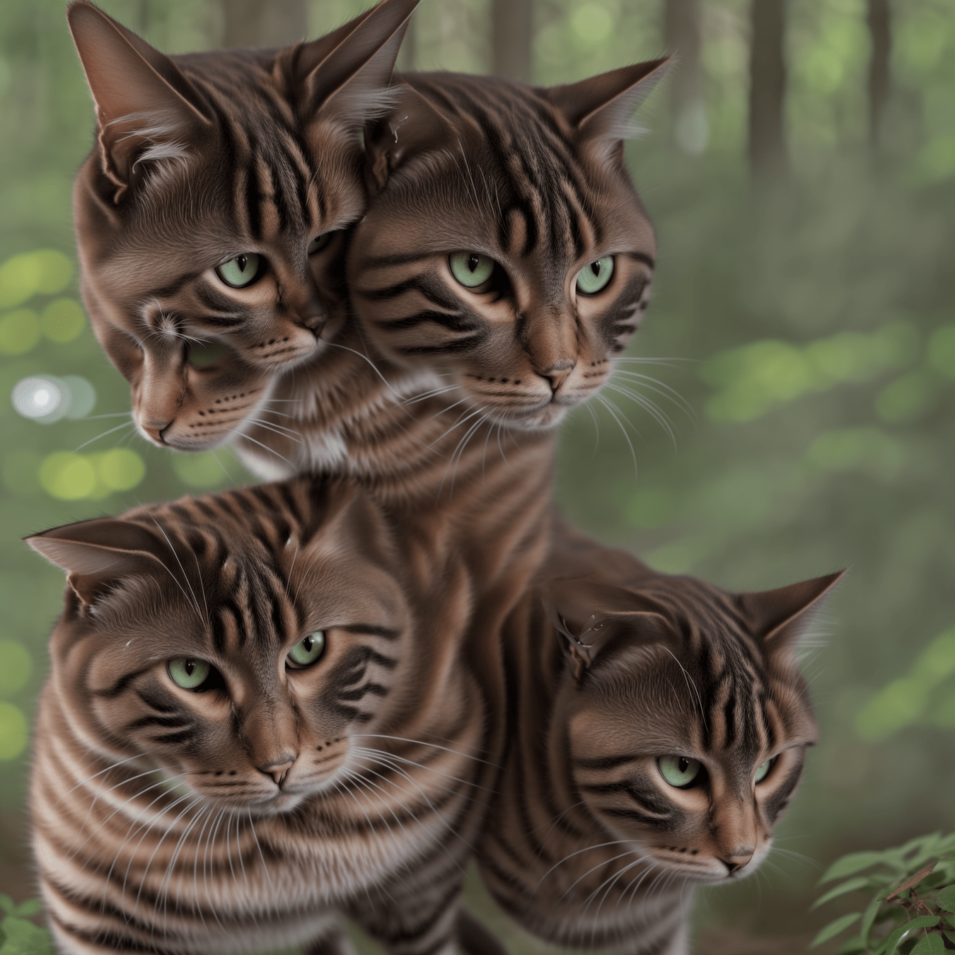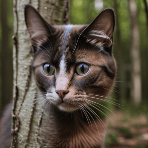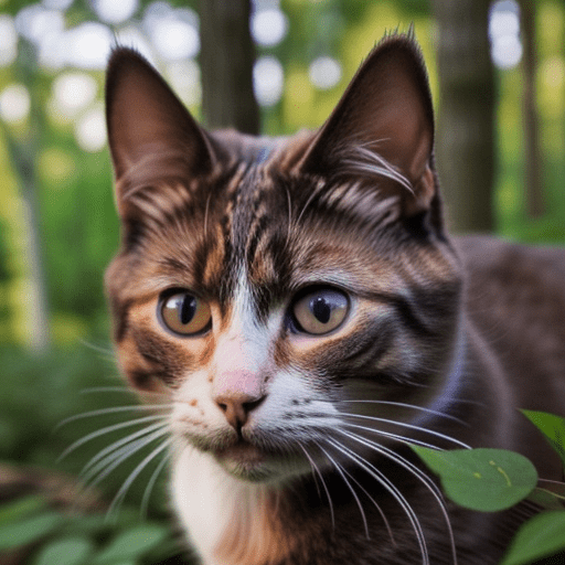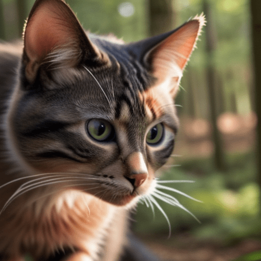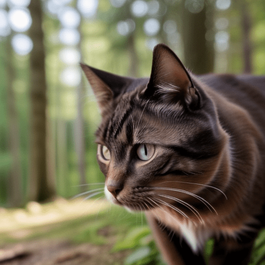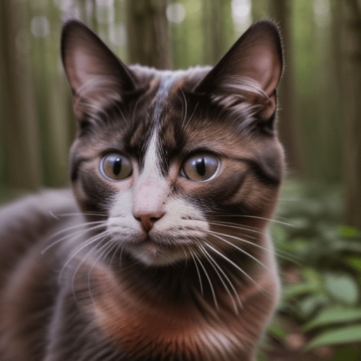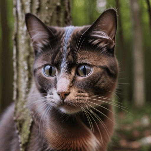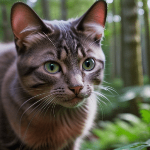 a photorealistic cat in the woods, close up