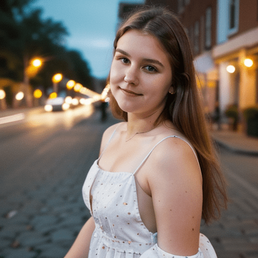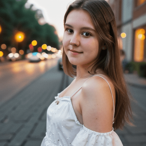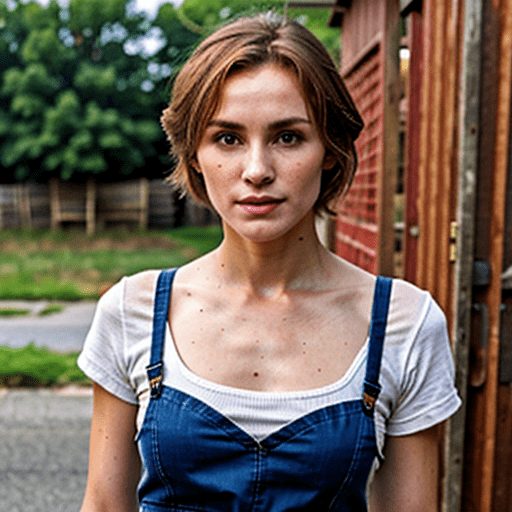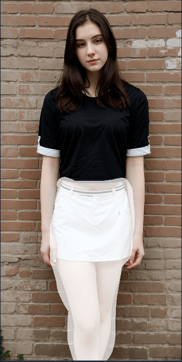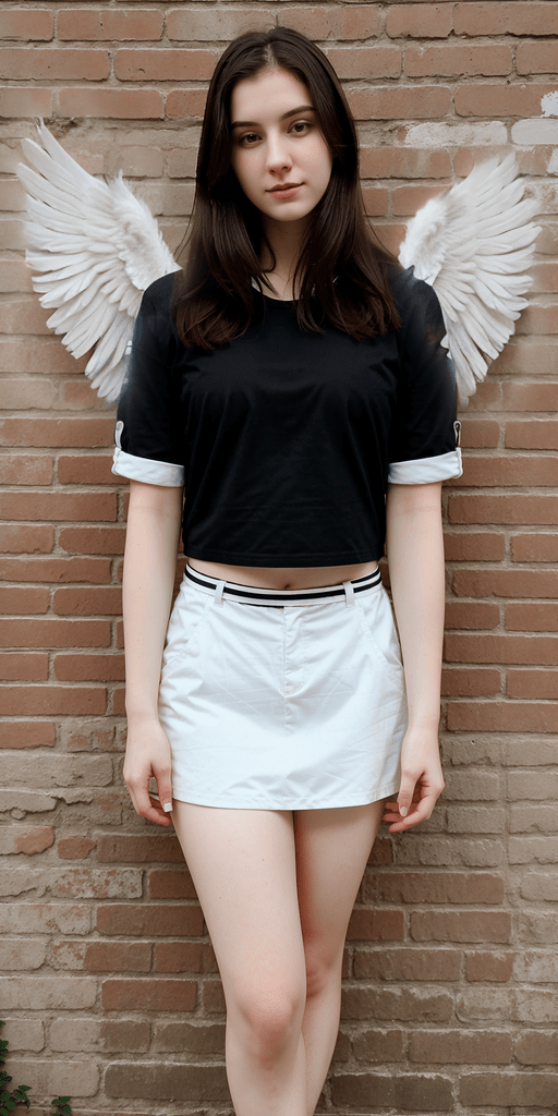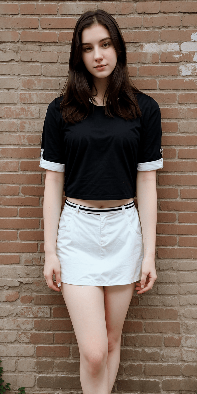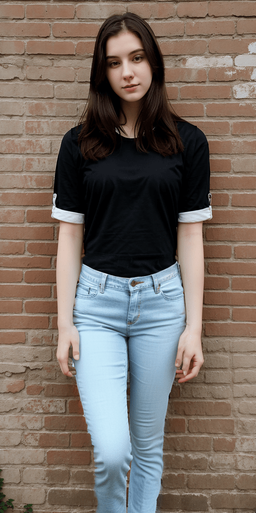 photo of 24 y.o woman standing in front of a brick wall, pale skin