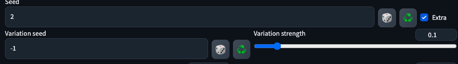 Klikken op het dobbelsteentje betekent terug seed -1 gebruiken