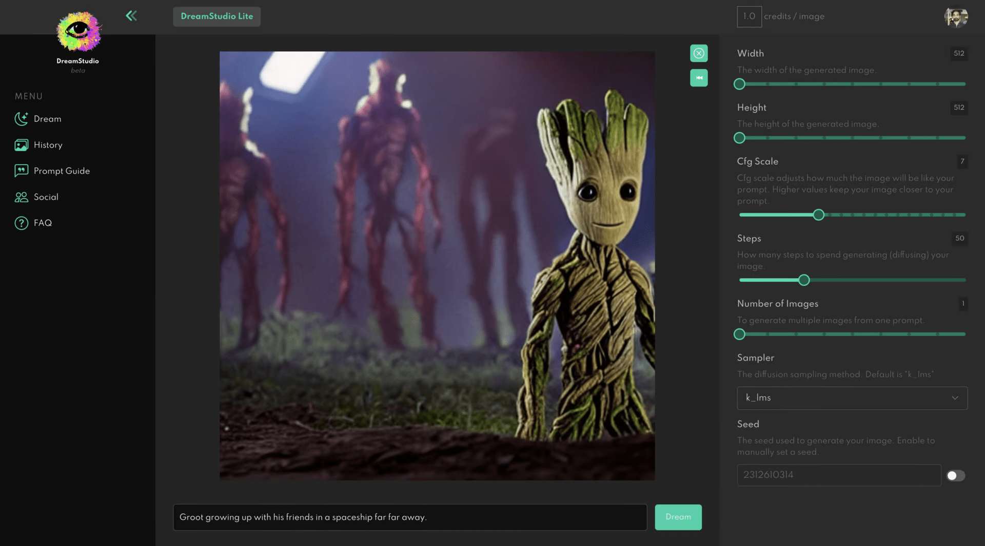 ** zet je afbeelding vast door de Seed parameter op 1 te zetten
