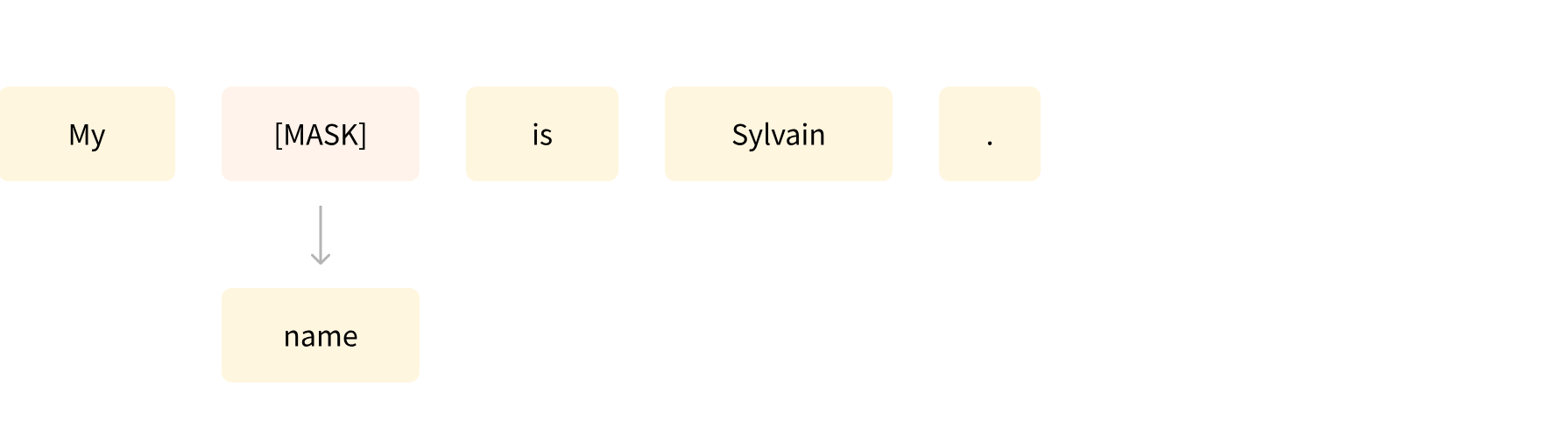 • Eeenvoudig voorbeeld. Gegeven een zin, "De kat [MASK] op het dak", zou het model het woord "zat" voorspellen als het gemaskerde token.