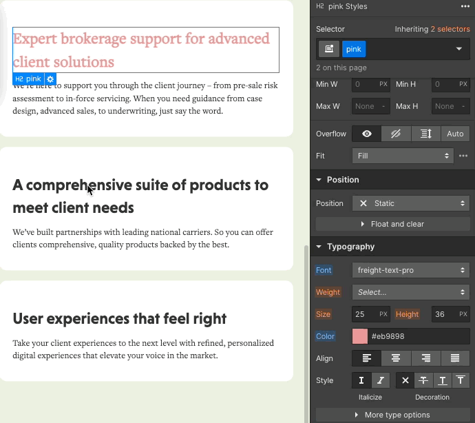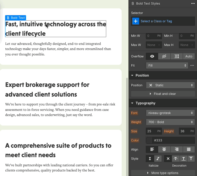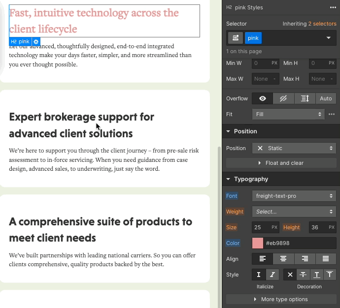 Typografische opmaak wordt doorgegeven aan child-elementen