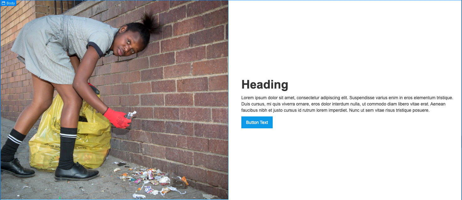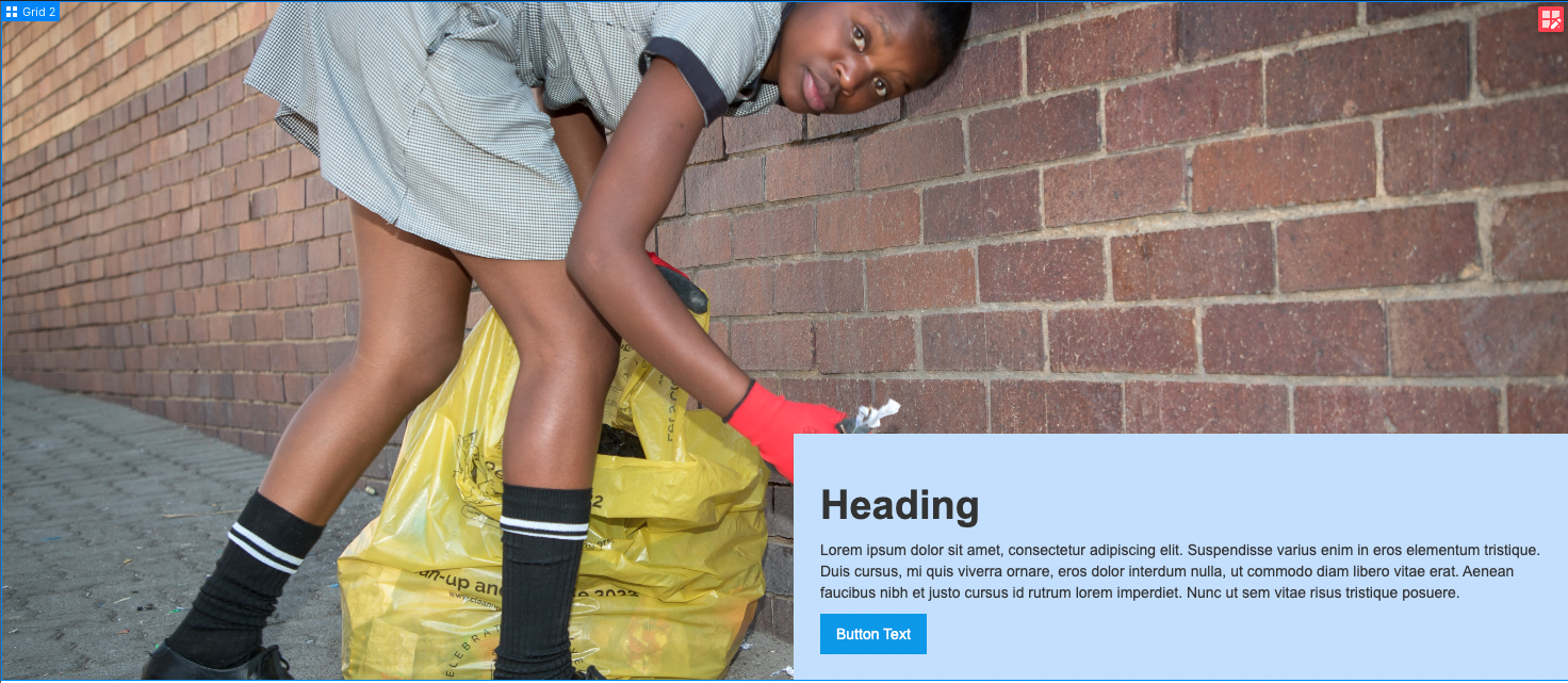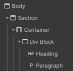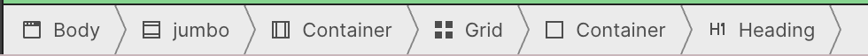 Voorbeeld: Een heading die binnen een container ligt, die container ligt binnen een grid en dit grid ligt binnen een andere container en die ligt in een section