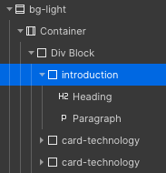 4. Geef elk child-element van je flex-parent introduction en card-technology de volgende setting