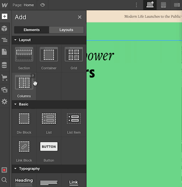 Webflow is een no-code website builder, via drag&drop kan je op een intuïtieve manier user interfaces bouwen