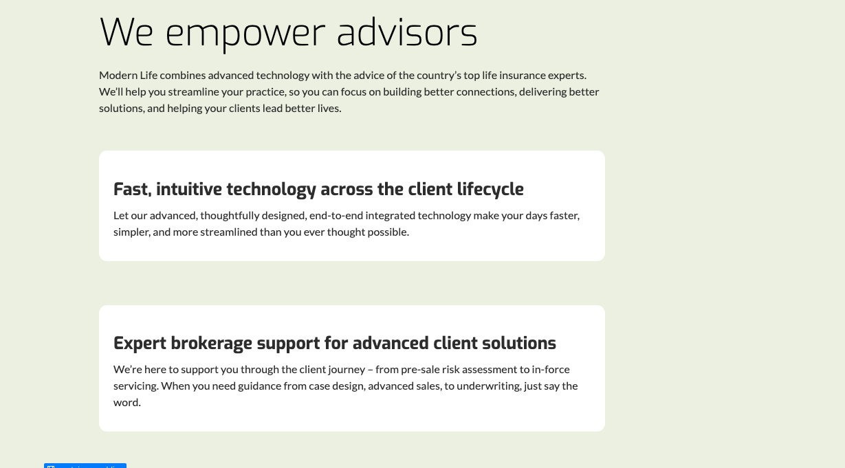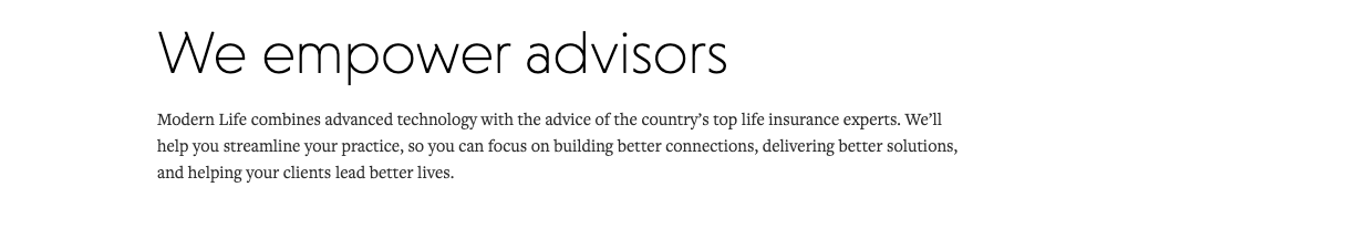 Modern Life combines advanced technology with the advice of the country’s top life insurance experts. We’ll help you streamline your practice, so you can focus on building better connections, delivering better solutions, and helping your clients lead better lives.