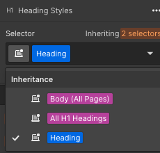 Voorbeeld: de font family die je instelt op een body element zal door alle andere elementen worden overgeërfd
